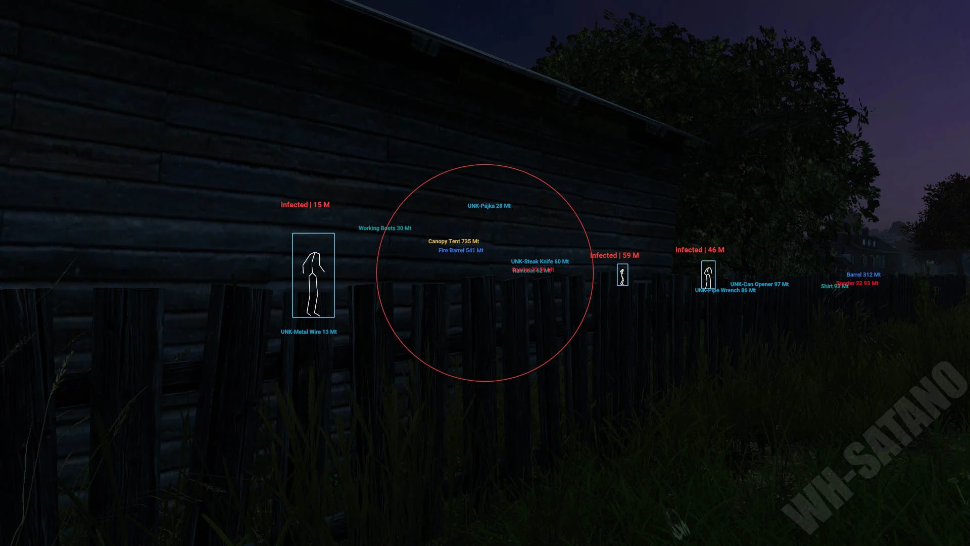 Separate ESP modules for zombies and animals make navigation in dangerous zones easier. Adjustable maximum distance helps avoid screen clutter and focus on nearby threats.